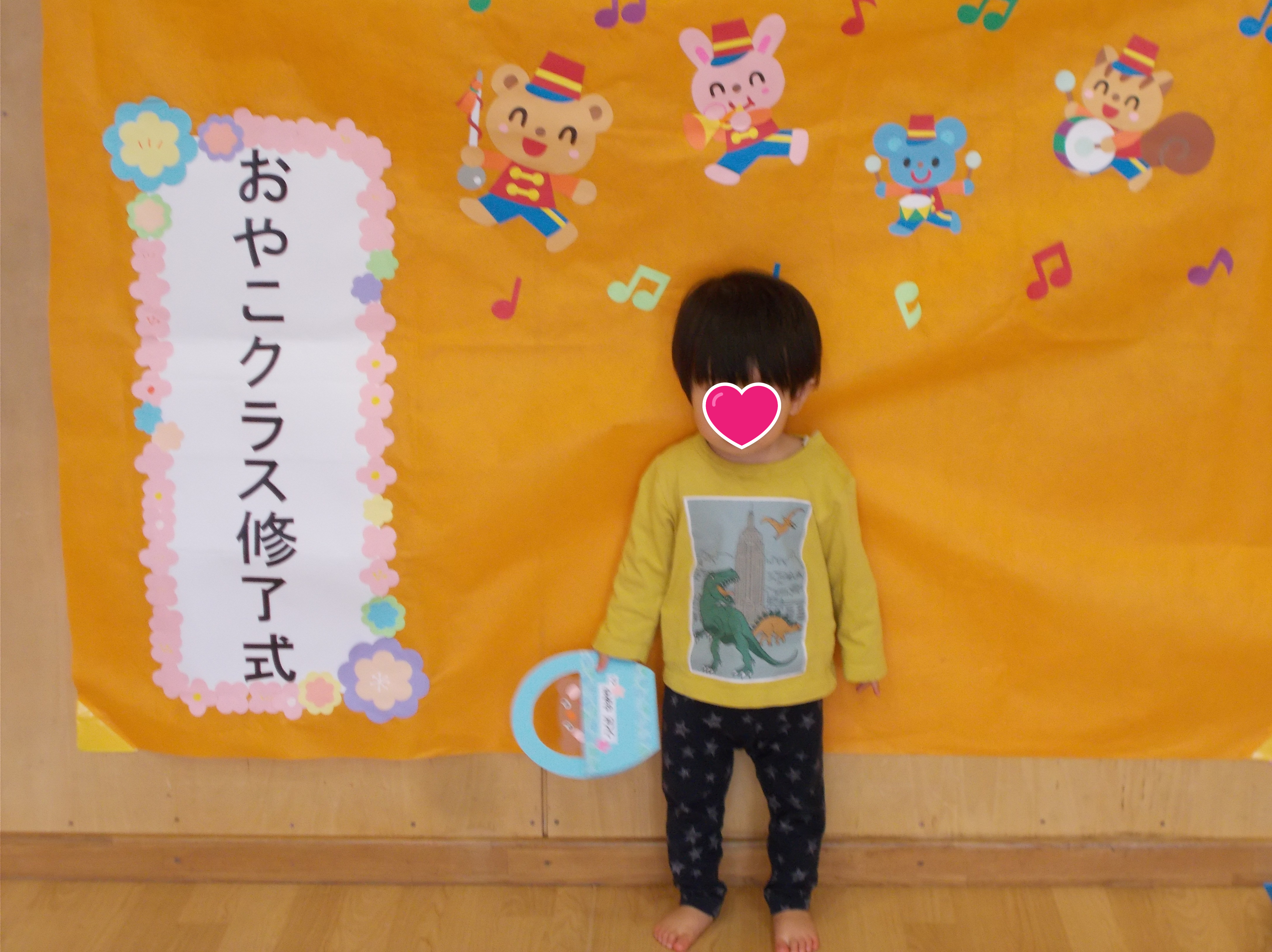 無事に終了式を迎えたちっちゃ芽さんたち♡♡♡ 先生から終了証を受け取って記念撮影しました。